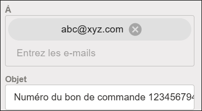 | Objet | Objet du courriel. Ce champ remplit automatiquement le numéro de bon de commande. Ajustez le contenu au besoin. |