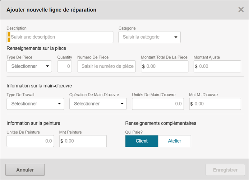 Remarque : Les fonctionnalités de gestion des pièces sont activées avec l’autorisation Gérer les pièces dans les paramètres de l’utilisateur.