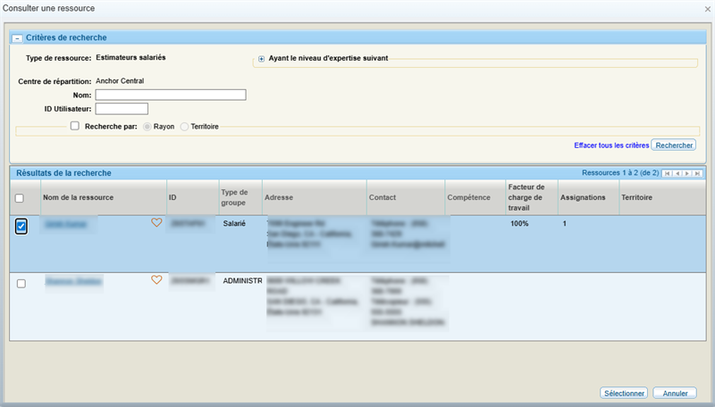 - In the Resource Lookup window, enter the desired search criteria to find resources and select Search.
