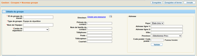 - Select a Dispatch Center from the list in the Group Details section.