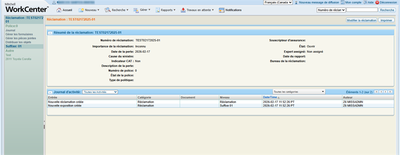 - View the claim navigation pane and the claim details page.