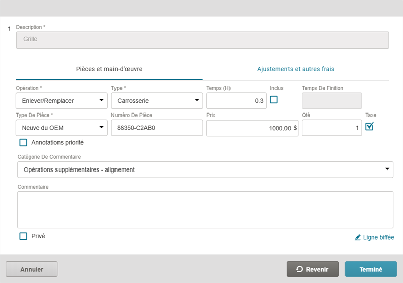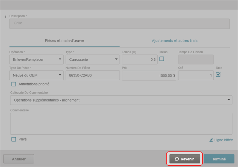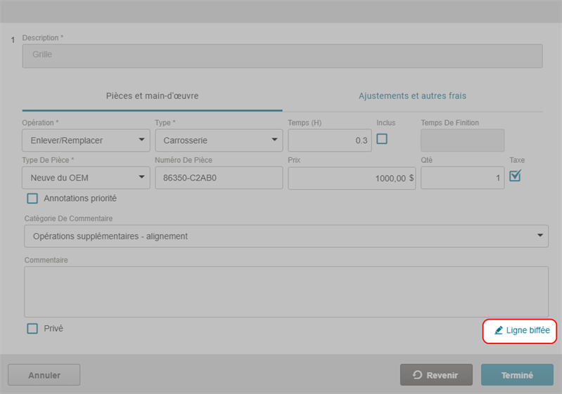 Strike through a repair line to remove it from the review. Any lines you strike through will be sent to Mitchell Cloud Estimating as a Review Annotation line that can be accepted or rejected.