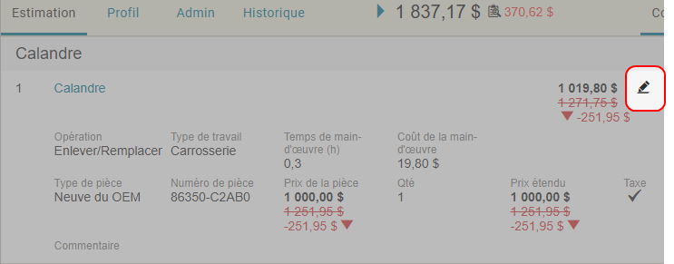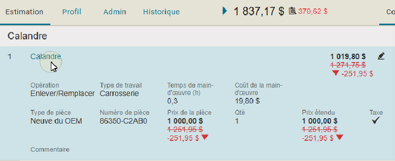 On the Estimate Tab, you can view and edit the estimate. Annotate the estimate to suggest changes before you send the estimate back to the appraiser for correction.