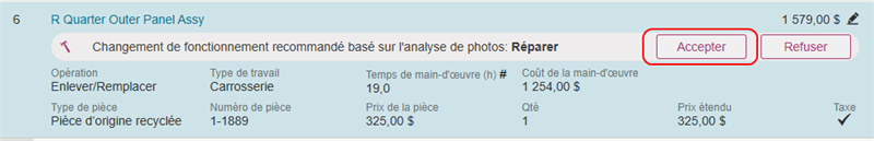 If you agree with an operation (Repair vs. Remove and Replace) change suggested by Intelligent Review: