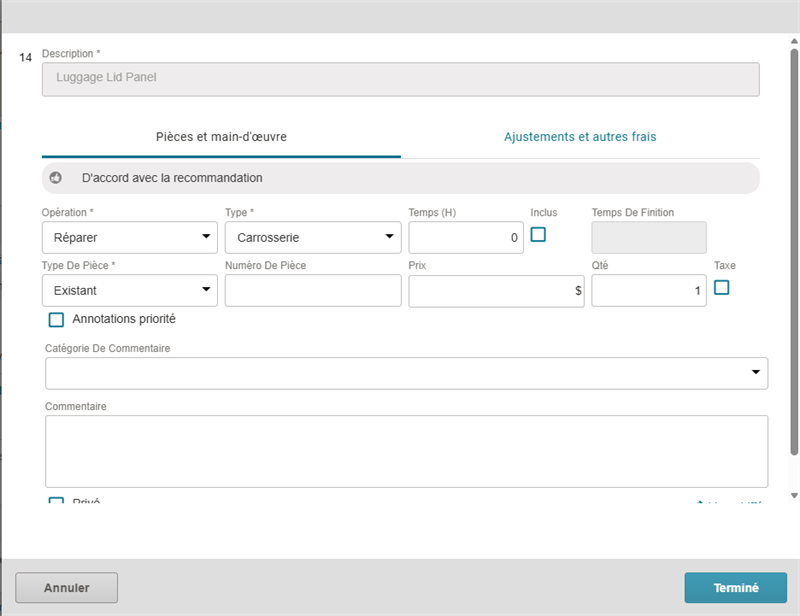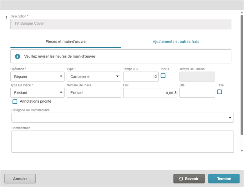 The operation is automatically changed and the estimate is annotated as necessary according to the change.
