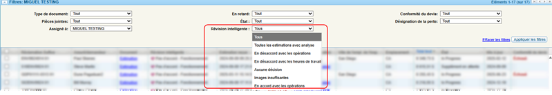 - Optionally, use filters to show only estimates with a certain Intelligent Review Status.